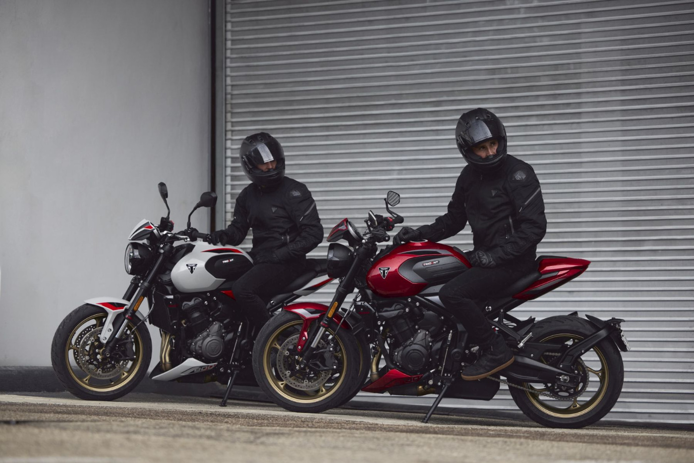 De Trident 800 is gebouwd voor serieus plezier. Het lichtgewicht chassis en de hoogwaardige, verstelbare Showa-vering zorgen voor een energieke rijervaring met instinctieve wendbaarheid en zelfverzekerde controle. Het brede stuur, het compacte frame en de assertieve rijhouding zorgen samen voor een motorfiets die onmiddellijk reageert op elke input, moeiteloos door bochten stuurt en stabiel blijft bij hoge snelheden. Met een gewicht van slechts 198 kg met volle tank en Michelin-banden met veel grip is hij lichtvoetig en altijd klaar om een glimlach op je gezicht te toveren.